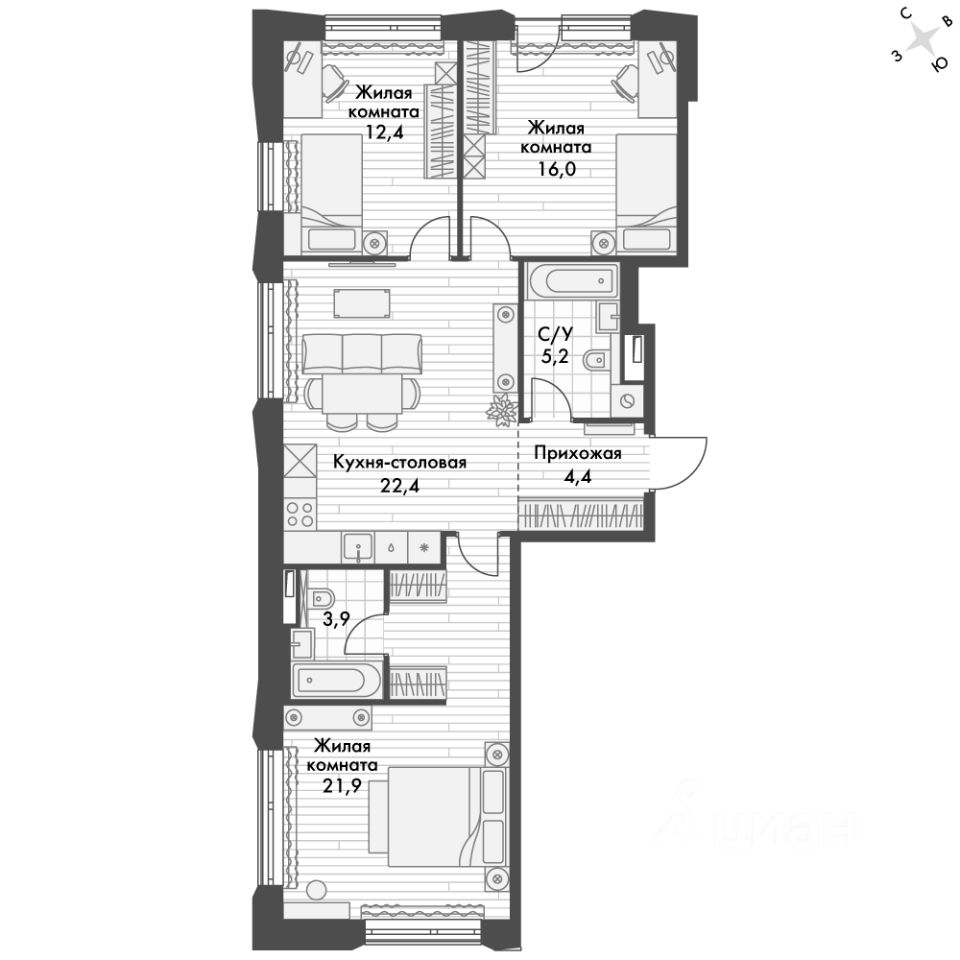 Продаётся 3-к квартира номер 429 общей площадью 85.8 кв.м. на 8-м этаже 10 этажного здания. Предчистовая отделка. Цена с учётом скидки.