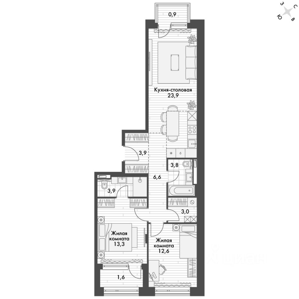 - 15 мин. пешком до Набережной Цесаревича