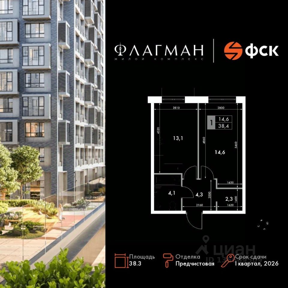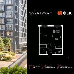 Продаётся 1-к квартира номер 232 общей площадью 38.3 кв.м. на 21-м этаже 24 этажного здания. Предчистовая отделка. Цена с учётом скидки.