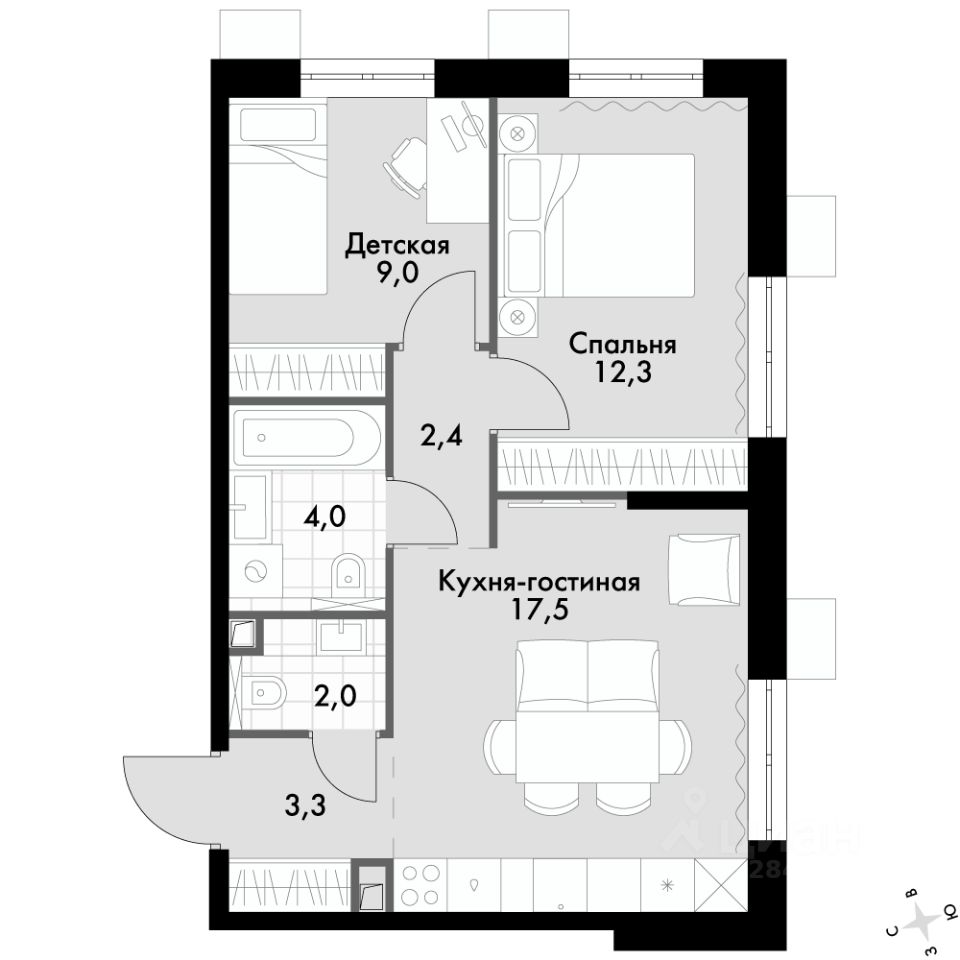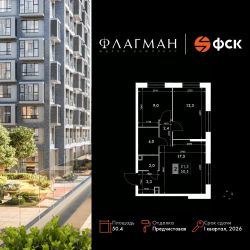 Продаётся 3-к квартира номер 138 общей площадью 50.4 кв.м. на 13-м этаже 24 этажного здания. Предчистовая отделка. Цена с учётом скидки.
