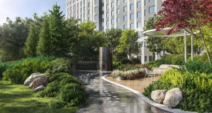 Эксклюзивный проект благоустройства территории разработан одной из лучших студий ландшафтного дизайна DEREVOPARK с фокусом на комфорт и удобство для всех жителей комплекса.