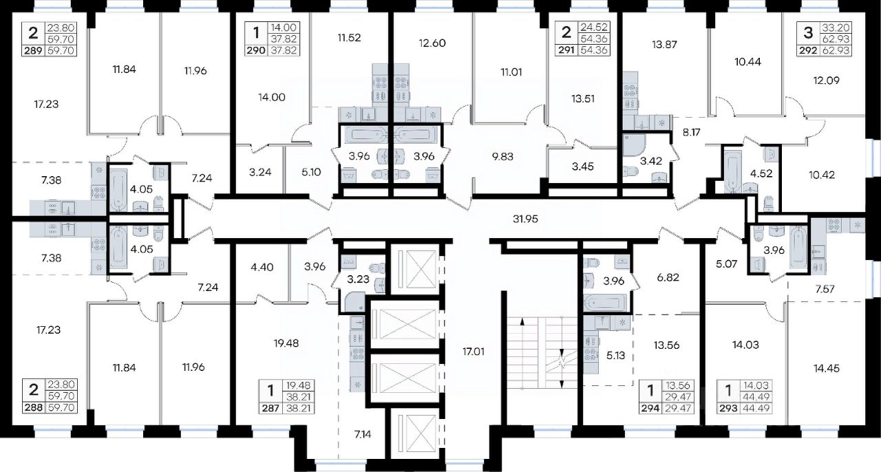 Продается 2-комн. квартира на 14-м этаже в жилом комплексе GloraX Тухачевского — современном проекте нового формата в престижном районе Владивостока. Общая площадь лота составляет 59,70 кв. м, из которых 23,80 кв. м отведено под жилую и 7,38 кв. м под кухонную зону. Номер квартиры - 289.