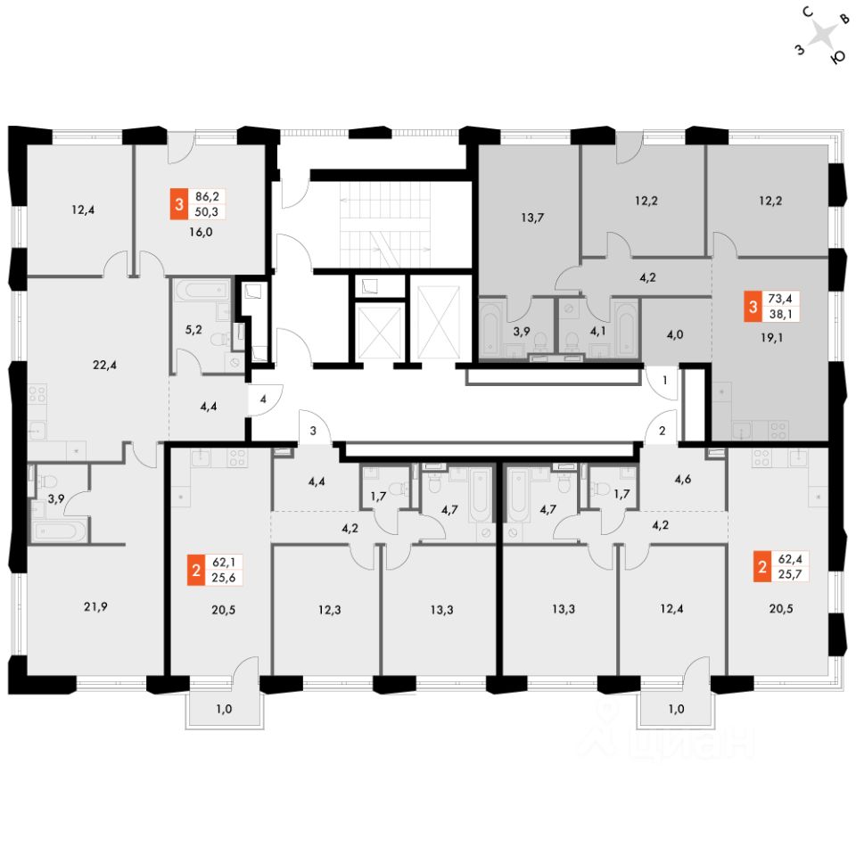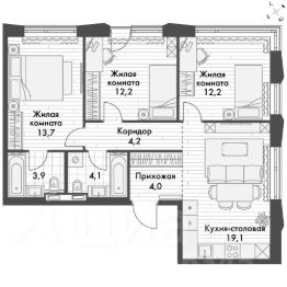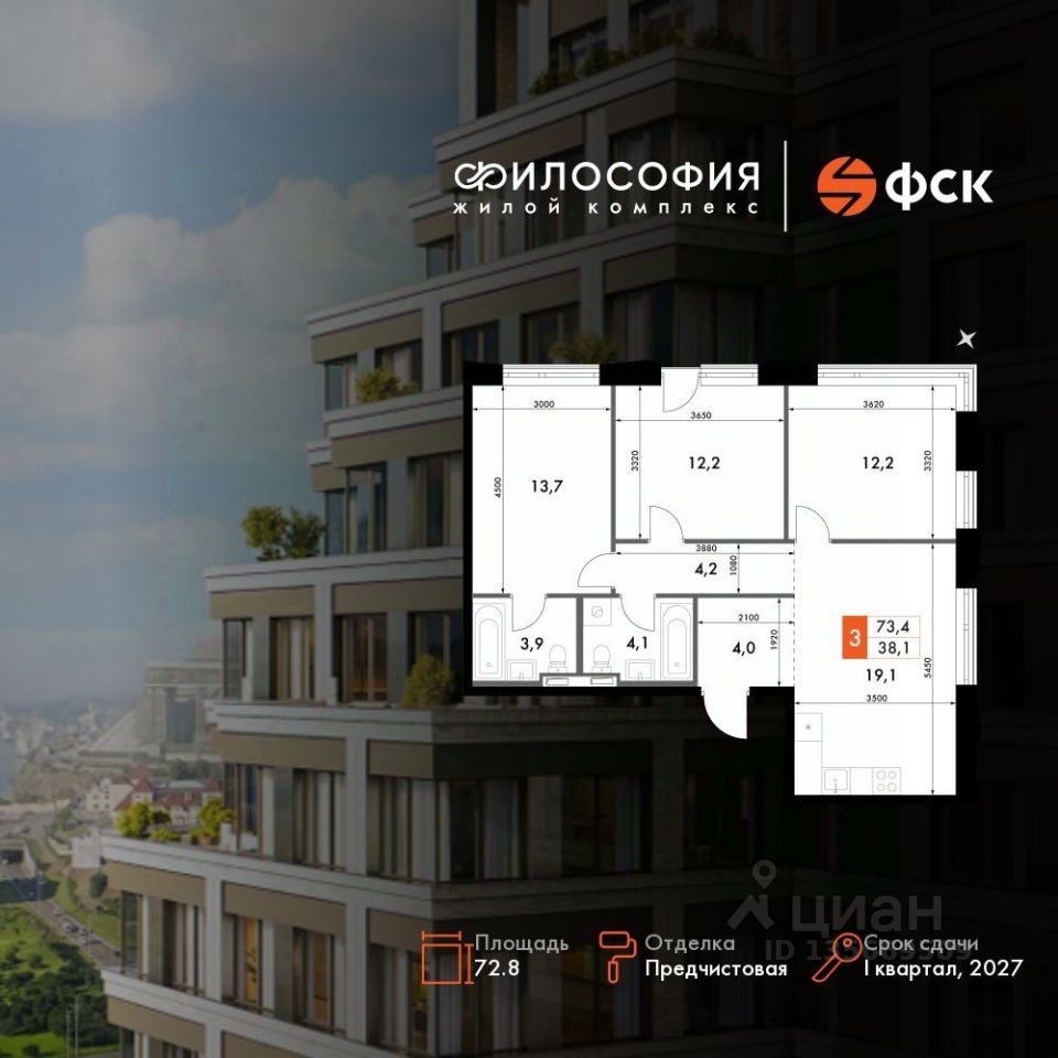 Продаётся 3-к квартира номер 426 общей площадью 72.8 кв.м. на 8-м этаже 10 этажного здания. Предчистовая отделка. Цена с учётом скидки.