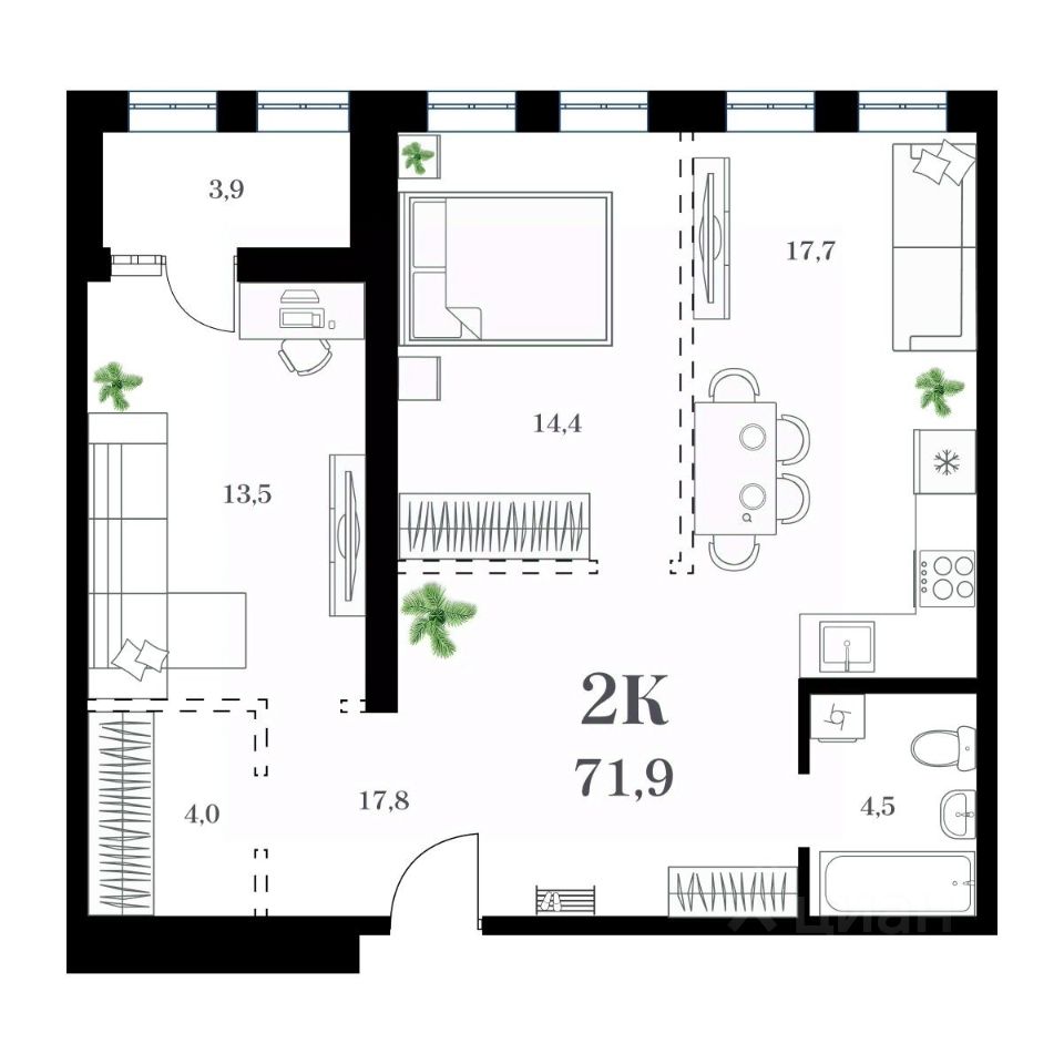 Общая площадь71,9 м²