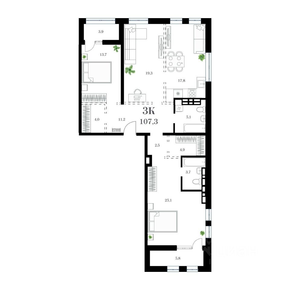 Общая площадь107,3 м²