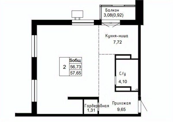 Общая площадь57,65 м²