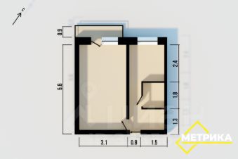 Квартира с классической планировкой: жилая комната, кухня, коридор, санузел.