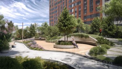 Современный ландшафтный дизайн жилого комплекса GloraX Клубный создан ведущей российской студией DEREVOPARK. Во дворе для детей всех возрастов предусмотрены различные игровые площадки с лазалками, батутами, качелями и песочницей. В центре расположен специальный "зеленый остров", где взрослые могут отдохнуть на качелях и гамаках в тени больших деревьев. Для любителей спорта предусмотрены две специальные спортивные площадки для настольного тенниса и стритбола — для зрителей тоже найдется место! А еще на территории комплекса будет дорожка для роллеров и любителей покататься на велосипеде, самокате или скейте.