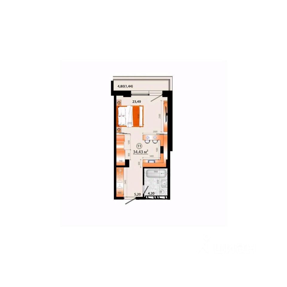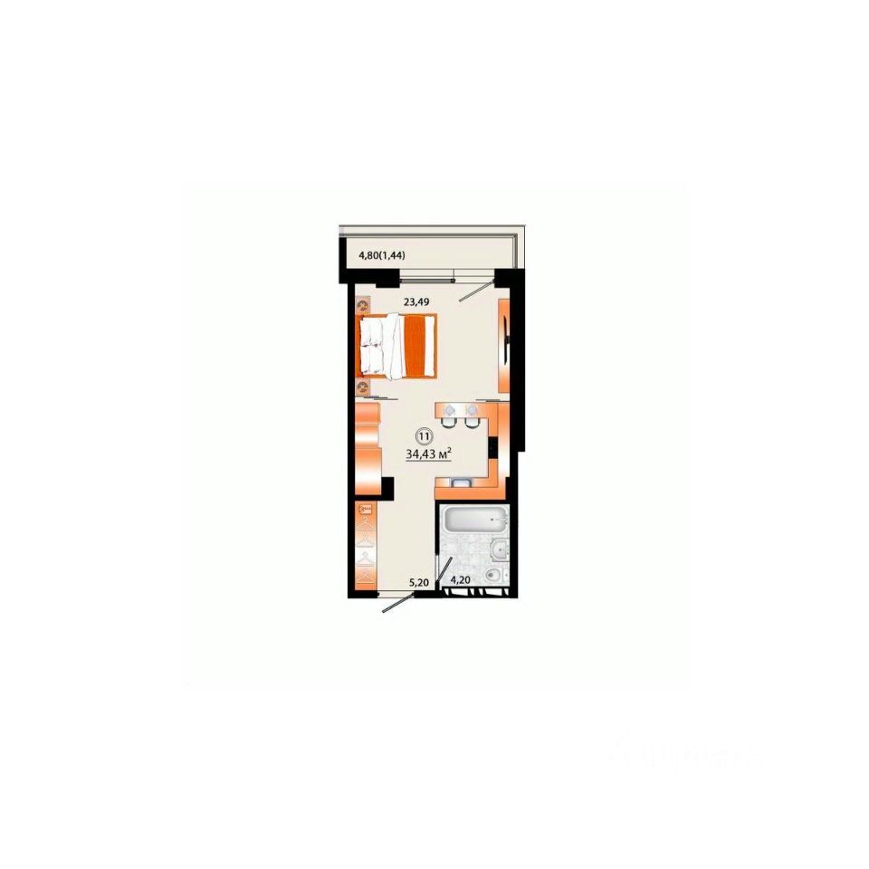 Общая площадь34,43 м²
