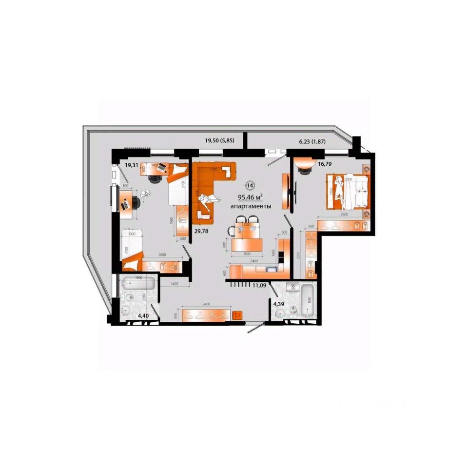Общая площадь95,46 м²