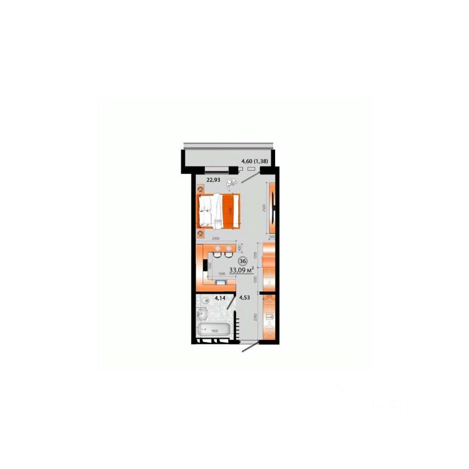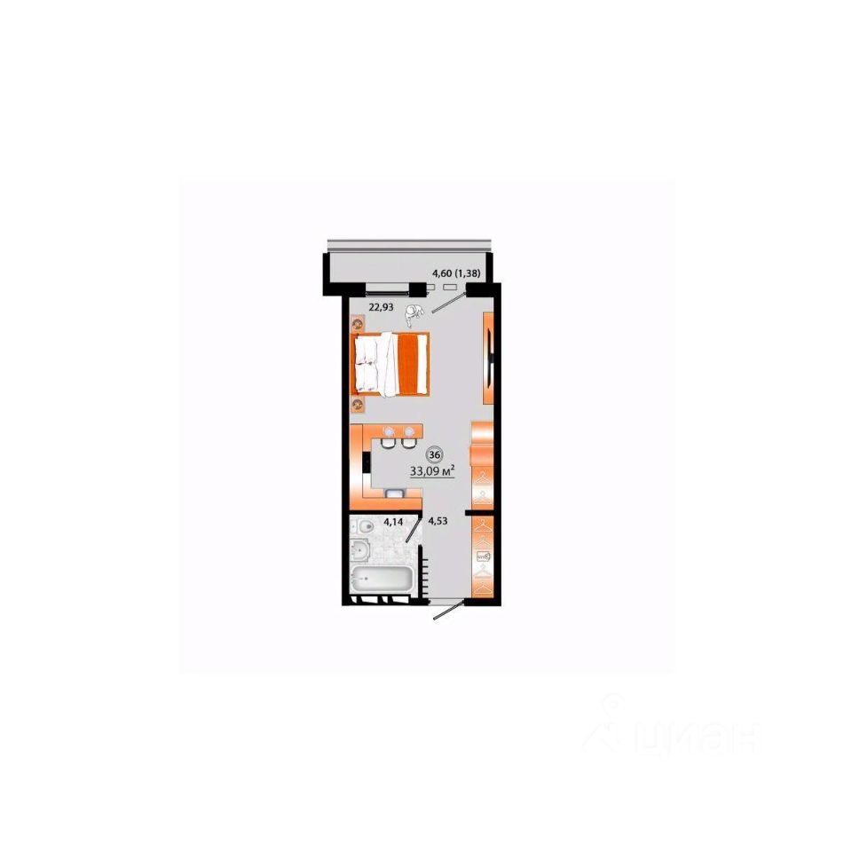 Общая площадь33,09 м²