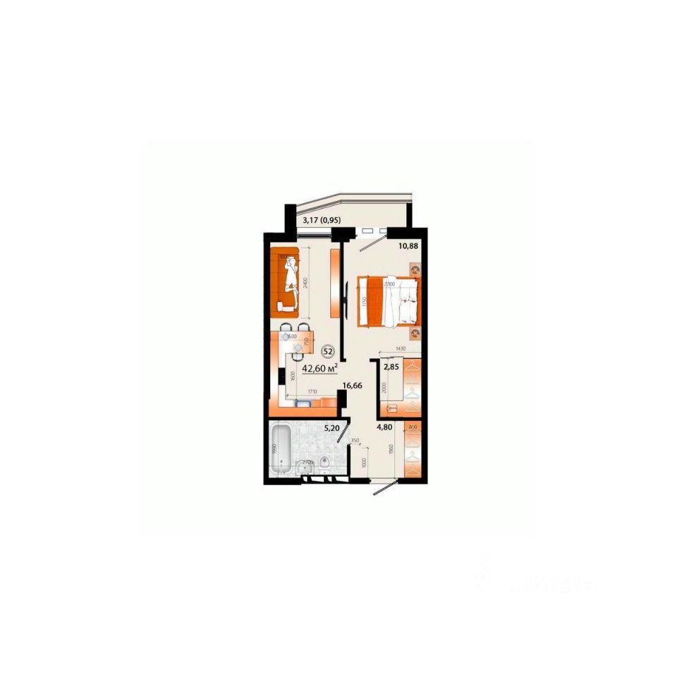 Общая площадь42,6 м²