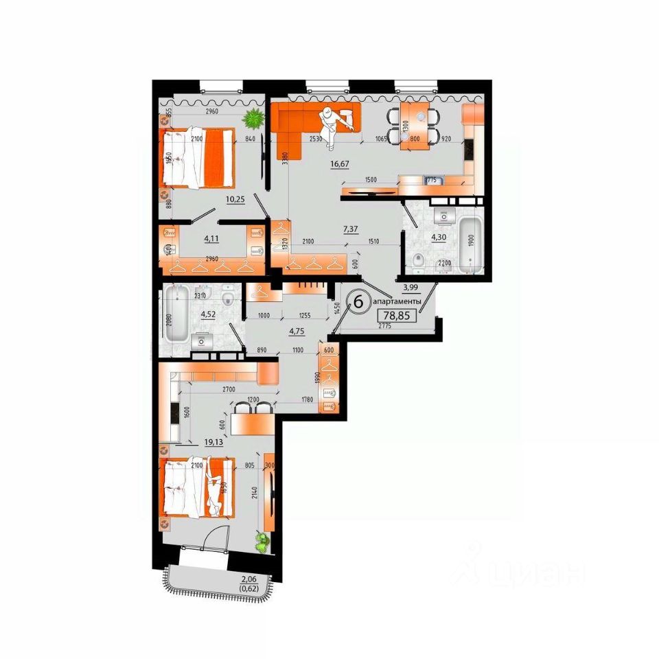 Общая площадь78,85 м²