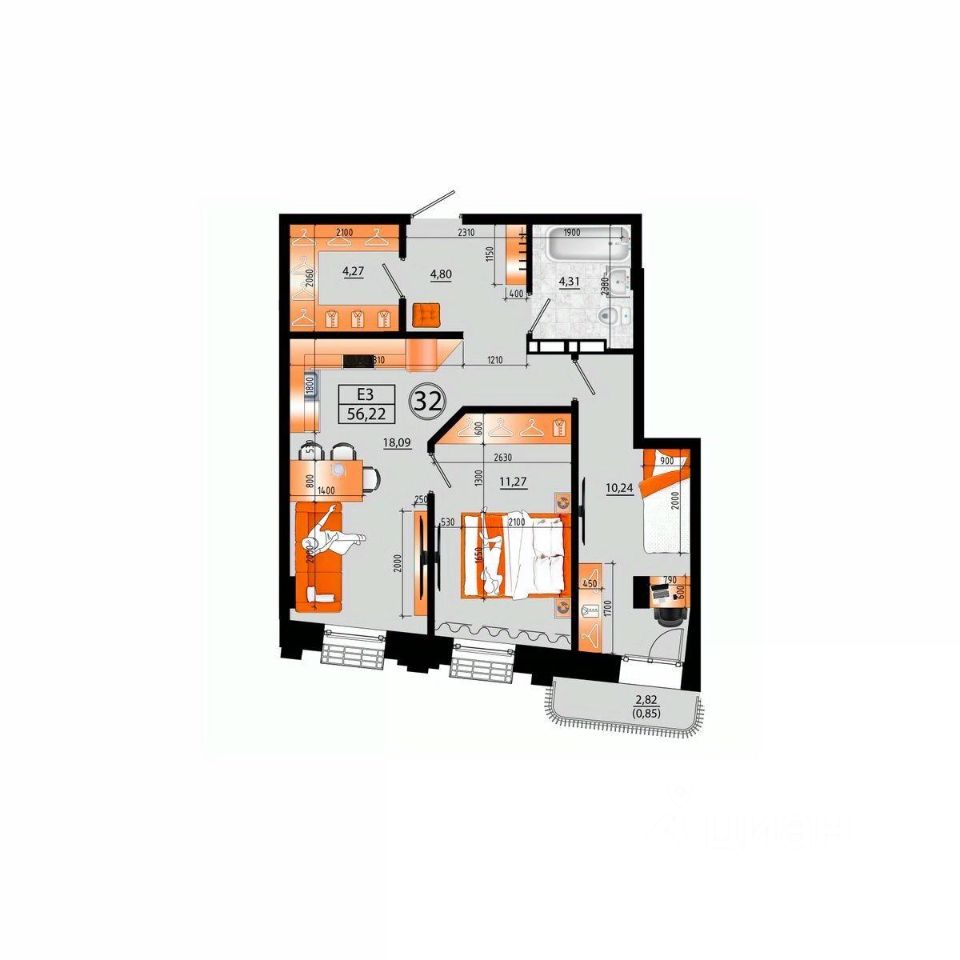 Общая площадь56,22 м²