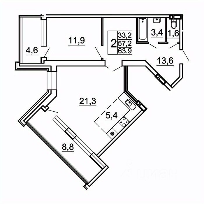 Общая площадь63,9 м²