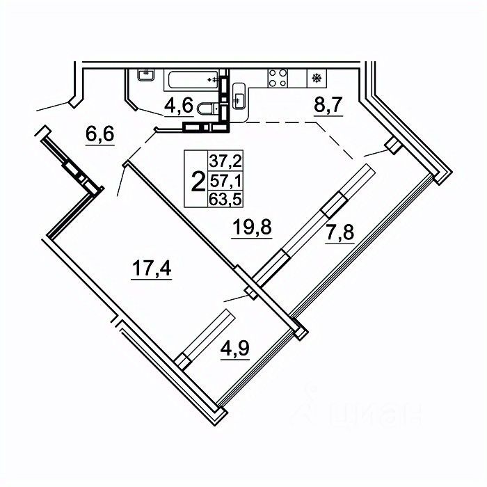 Общая площадь63,5 м²