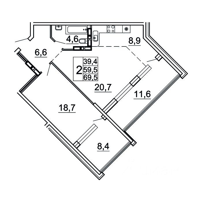 Общая площадь69,5 м²