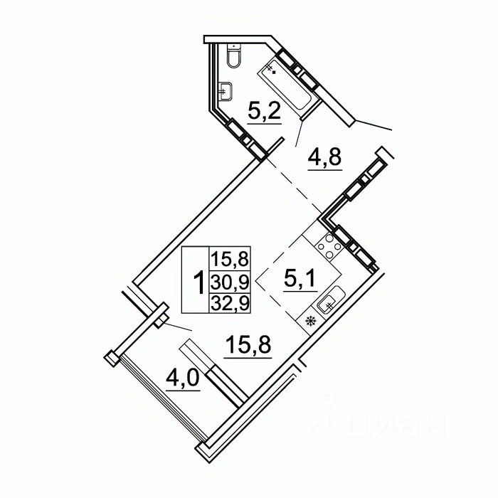 Общая площадь32,9 м²