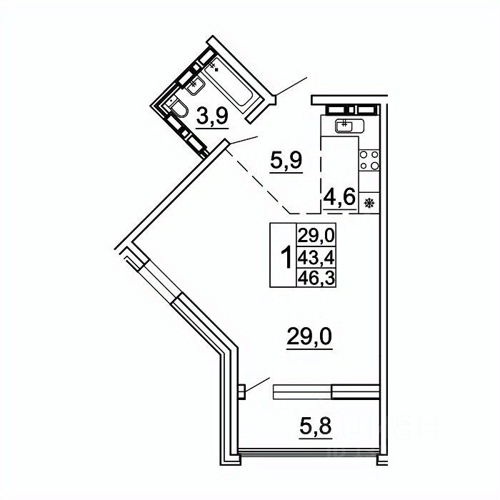 Общая площадь46,3 м²