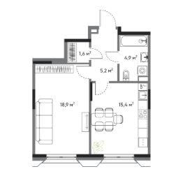 Современная 1 комнатная квартира классического формата в жилом комплексе "ДОМ на Востоке". Срок сдачи IV кв. 2027.