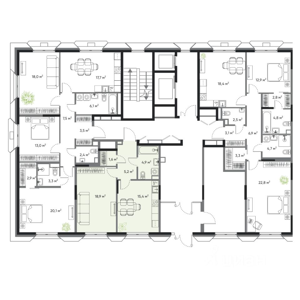 • 8 этажей в доме;