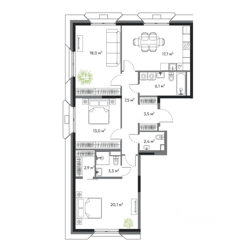 Современная 3 комнатная квартира классического формата в жилом комплексе "ДОМ на Востоке". Срок сдачи IV кв. 2027.