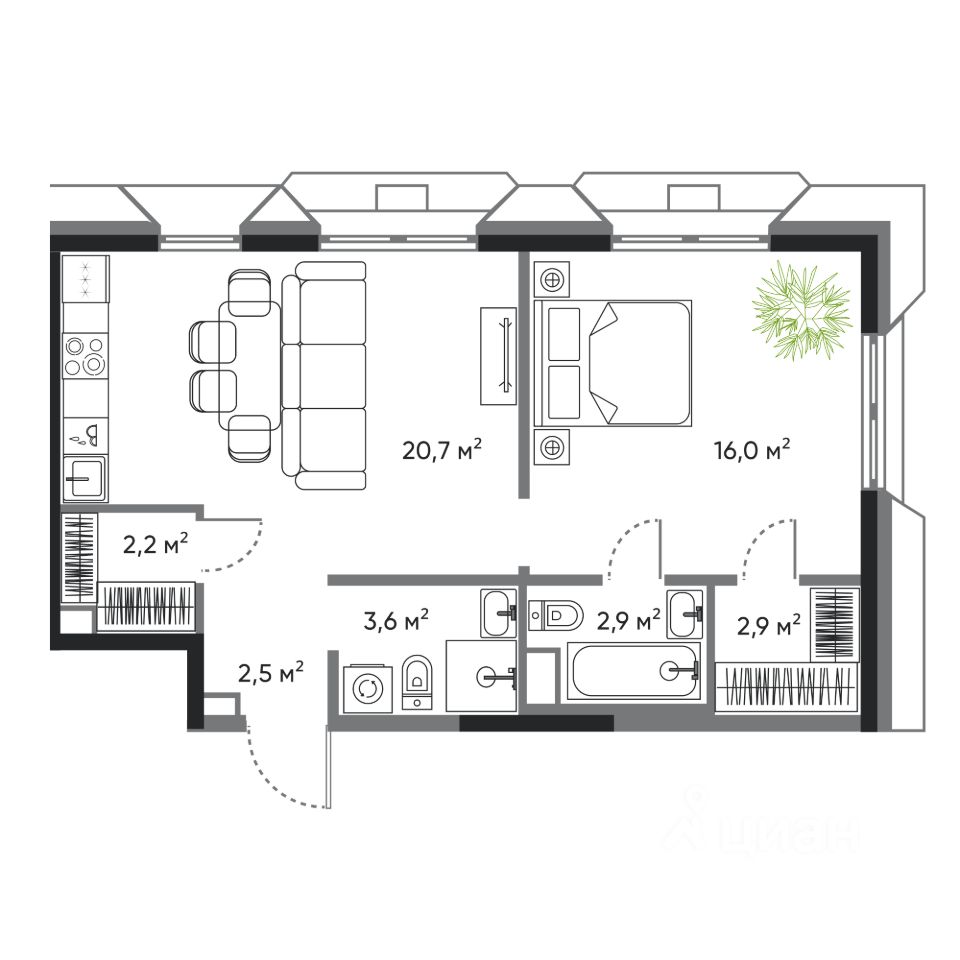 • просторная кухня-гостиная;