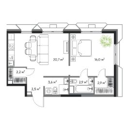 Современная 1 комнатная квартира евроформата в жилом комплексе "ДОМ на Востоке". Срок сдачи IV кв. 2027.
