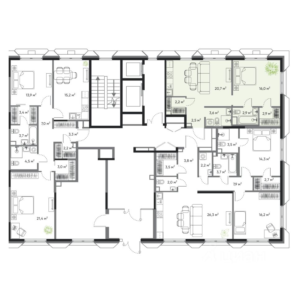 • 8 этажей в доме;