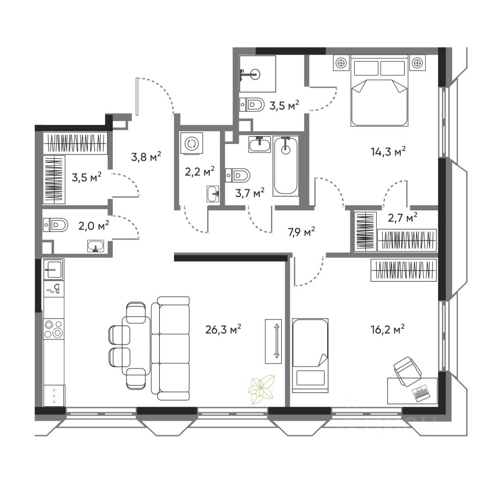• мастер-спальня с отдельным санузлом и просторной гардеробной;