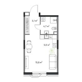 Современная студия в жилом комплексе "ДОМ на Востоке". Срок сдачи IV кв. 2027.