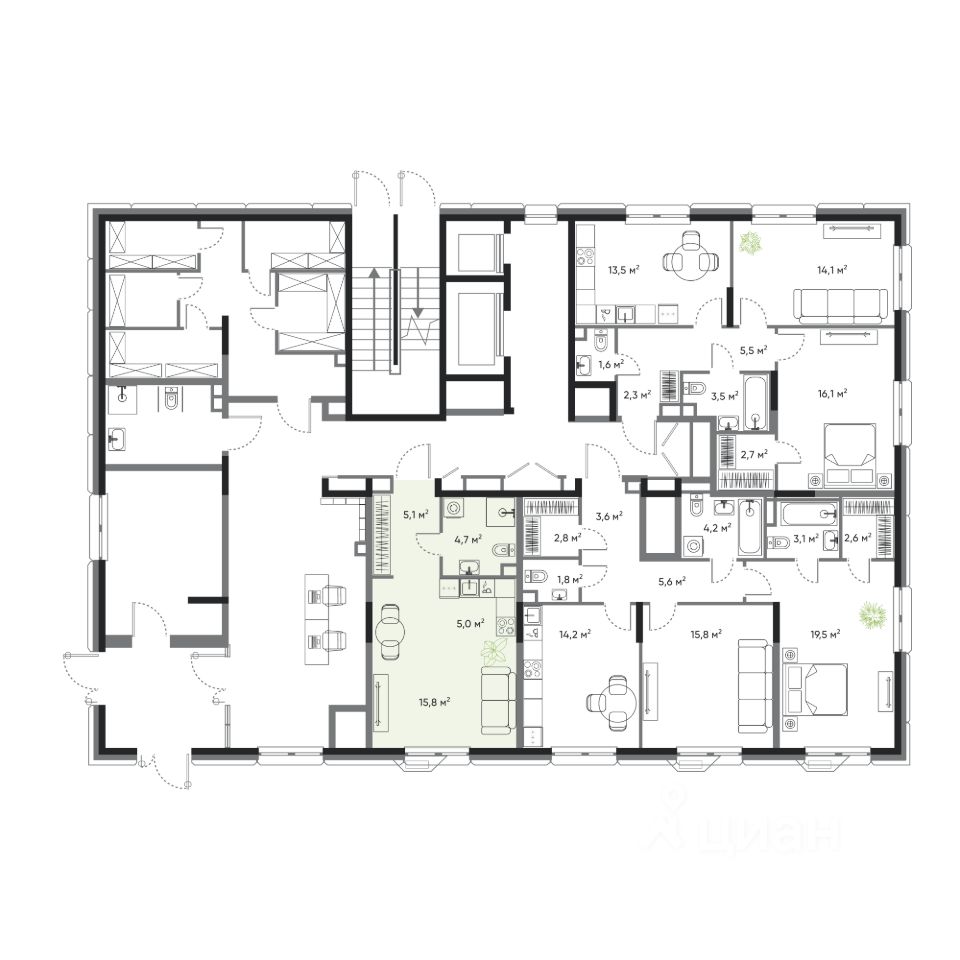 • 8 этажей в доме;
