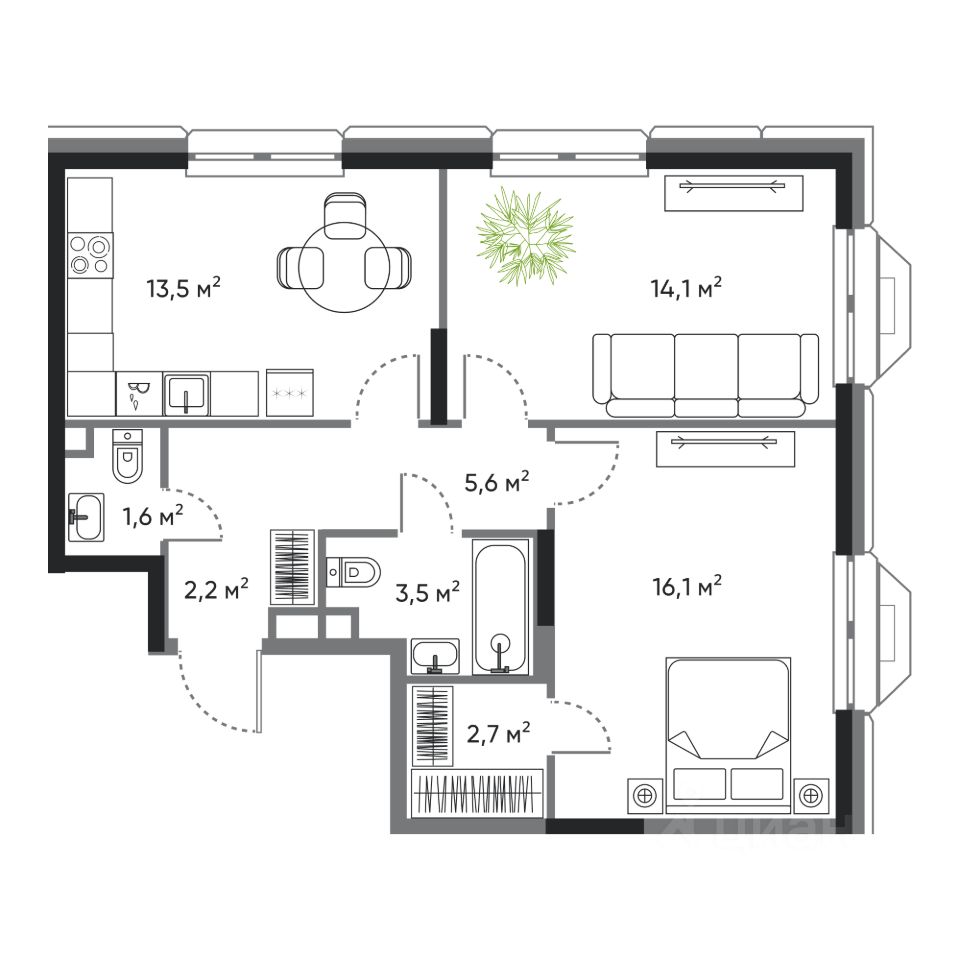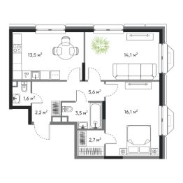 Современная 2 комнатная квартира классического формата в жилом комплексе "ДОМ на Востоке". Срок сдачи IV кв. 2027.