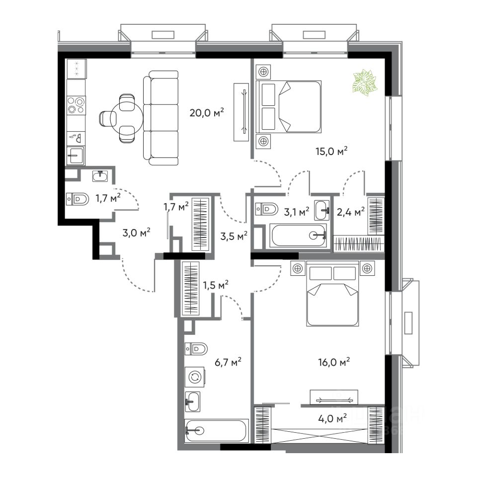 • мастер-спальня с отдельным санузлом и просторной гардеробной;
