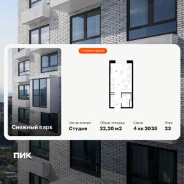 Продаётся квартира-студия площадью 22,2 кв.м на 3 этаже 25 этажного дома (Корпус 4, Секция 2) проекта ПИК Снежный парк. Светлый просторный подъезд на уровне земли, функциональная планировка, большие окна, c отделкой.