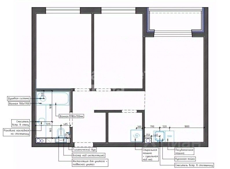 В квартире сделан современный качественный ремонт по дизайн проекту.