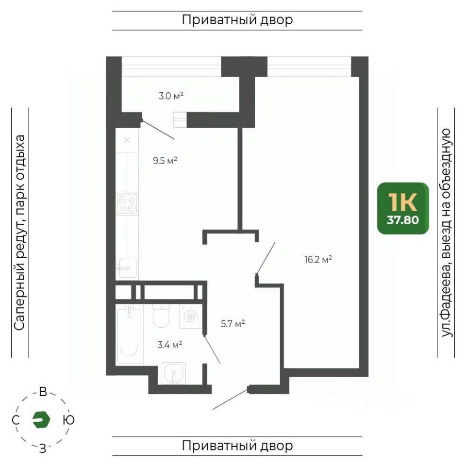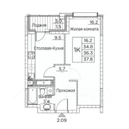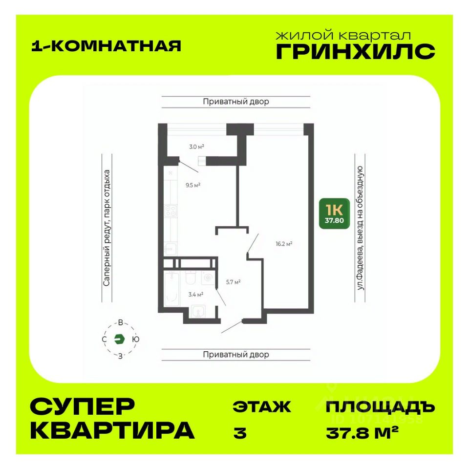 Общая площадь квартиры — 37.8 кв. м, этаж 3 из 21.