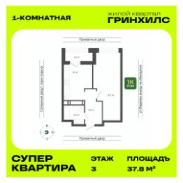 Продается 1-к квартира в ЖК "Гринхилс". Отделка - whitebox, санузел - под ключ.