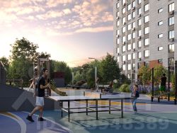 Территория жилого квартала благоустроена и включает игровые зоны и спортивные площадки для детей различных возрастных групп, уютные зоны отдыха со скамейками и универсальную воркаут-площадку для активного досуга.