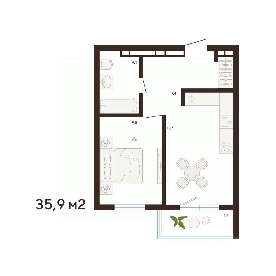35,9 м²