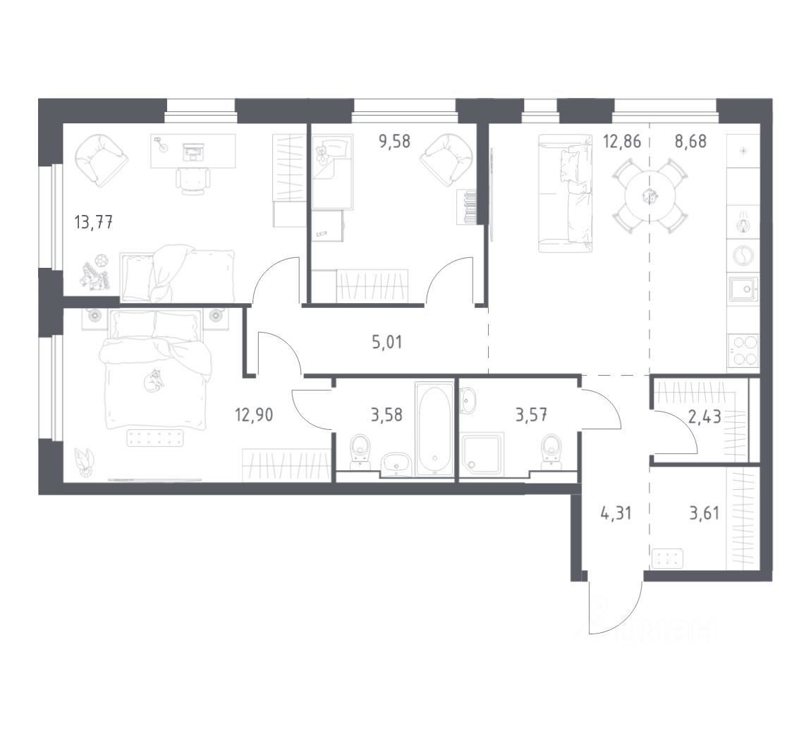 Выбирайте свое место для счастливой жизни: от уютной студии до просторной 3-комнатной квартиры. Хотите погрузиться в творческий процесс ремонта? Присмотритесь к вариантам предчистовой отделки.