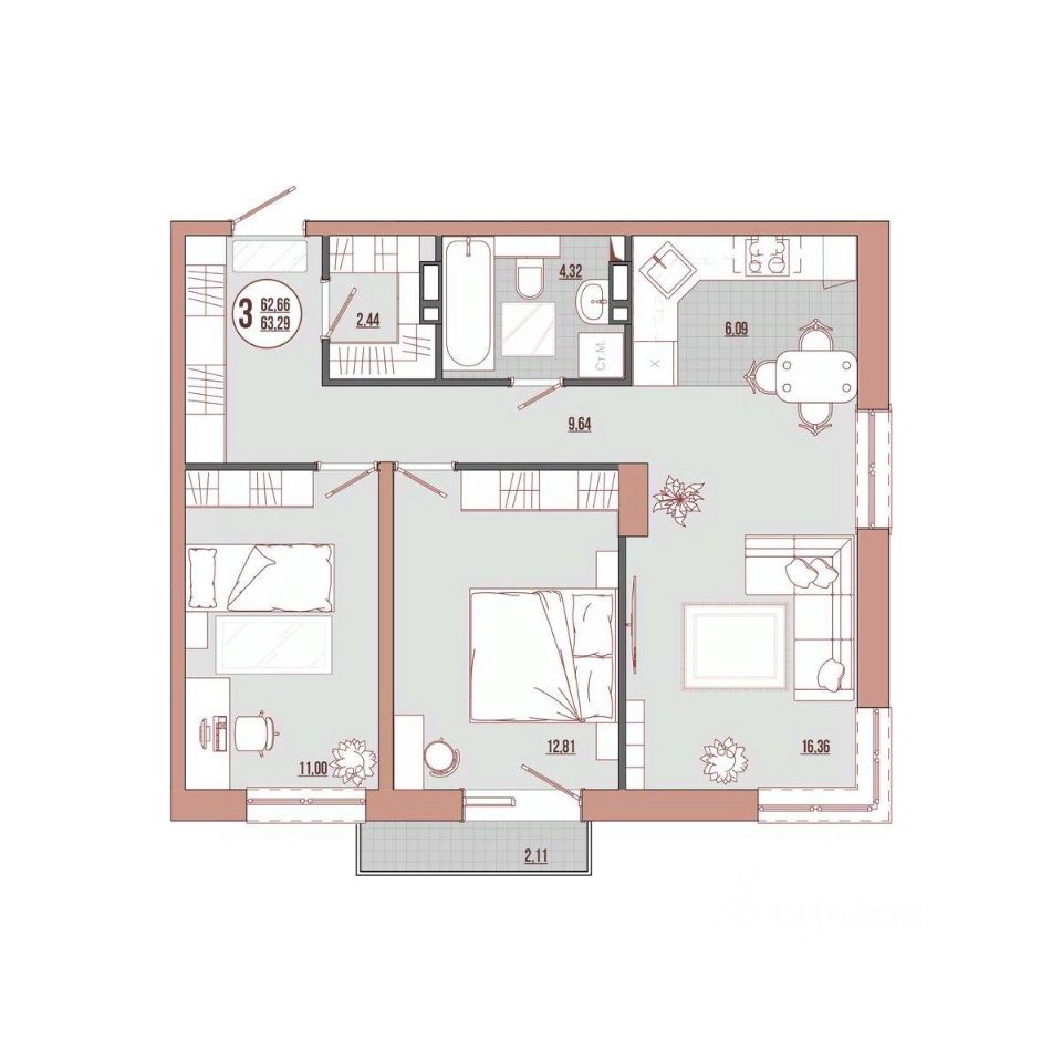 Продаётся 3-комнатная квартира в строящемся доме (Корпус 1), срок сдачи: III-кв. 2026, общей площадью 63.29 кв.м., на 11 этаже. Новый жилой дом от застройщика "СЗ Стоунлэнд" расположен по адресу: Россия, Приморский край, Владивосток, улица Адмирала Юмашева