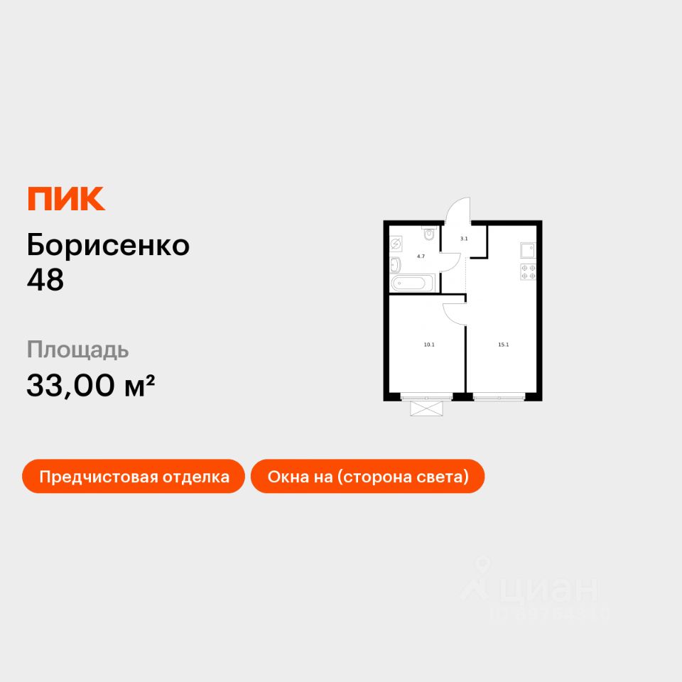 Продаётся 1-комн. квартира площадью 33 кв.м на 16 этаже 28 этажного дома (Корпус 2, Секция 2) проекта ПИК Борисенко 48. Светлый просторный подъезд на уровне земли, функциональная планировка, большие окна, предчистовая отделка.