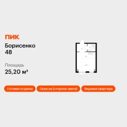 Продаётся квартира-студия площадью 25,2 кв.м на 29 этаже 30 этажного дома (Корпус 4, Секция 4) проекта ПИК Борисенко 48. Светлый просторный подъезд на уровне земли, функциональная планировка, большие окна, c отделкой.