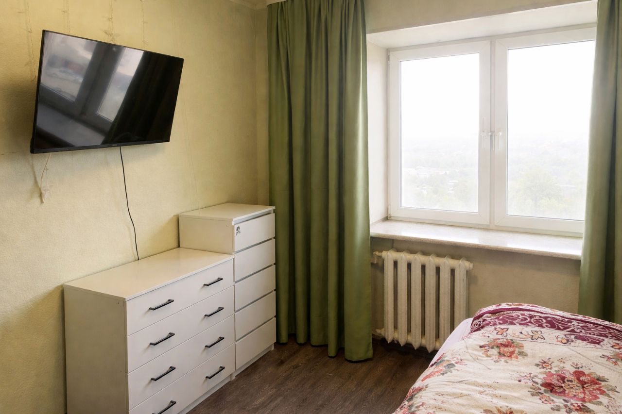 + Мебель и техника: кровать/диван, вместительный шкаф-купе, комоды, настенный телевизор, компактный стол; в ванной — стиральная машина, титан и душевая система.