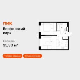 Продаётся 1-комн. квартира площадью 35,3 кв.м на 3 этаже 9 этажного дома (Корпус 9, Секция 1) проекта ПИК Босфорский парк. Светлый просторный подъезд на уровне земли, функциональная планировка, большие окна, c отделкой.