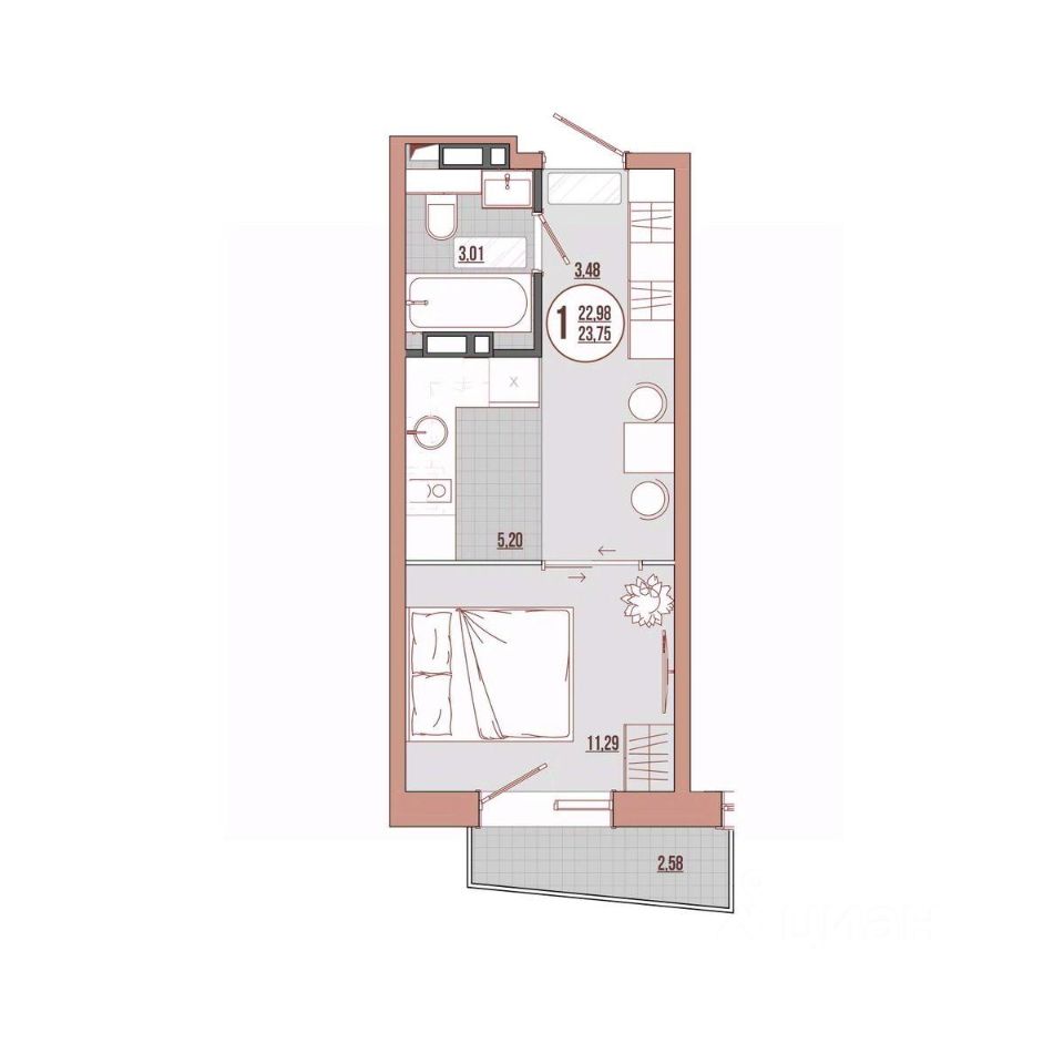 23,75 м²