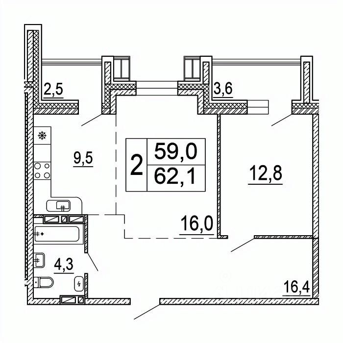 Продаётся 2-комнатная квартира в строящемся доме (Дом 2 (2 этап)), срок сдачи: III-кв. 2026, общей площадью 62.1 кв.м., на 3 этаже. "Горизонты" - новый жилой комплекс в самом центре Уссурийска.