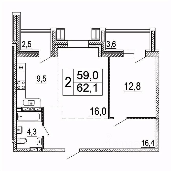 Продаётся 2-комнатная квартира в строящемся доме (Дом 2 (2 этап)), срок сдачи: III-кв. 2026, общей площадью 62.1 кв.м., на 13 этаже. "Горизонты" - новый жилой комплекс в самом центре Уссурийска.