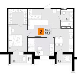 Продаётся 2-комнатная квартира в строящемся доме (Дом 1 (2 этап)), срок сдачи: III-кв. 2026, общей площадью 62.9 кв.м., на 14 этаже. "Горизонты" - новый жилой комплекс в самом центре Уссурийска.